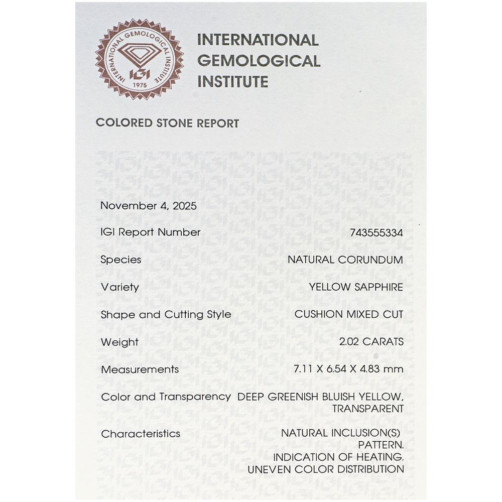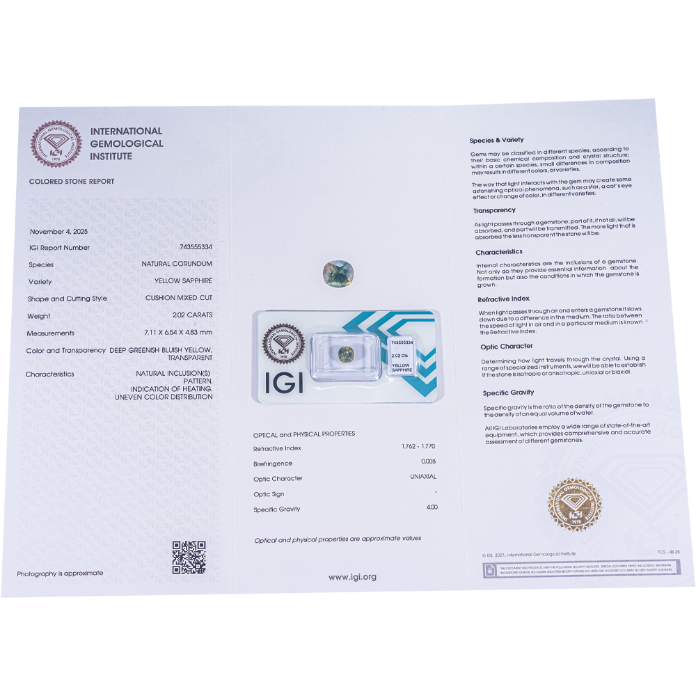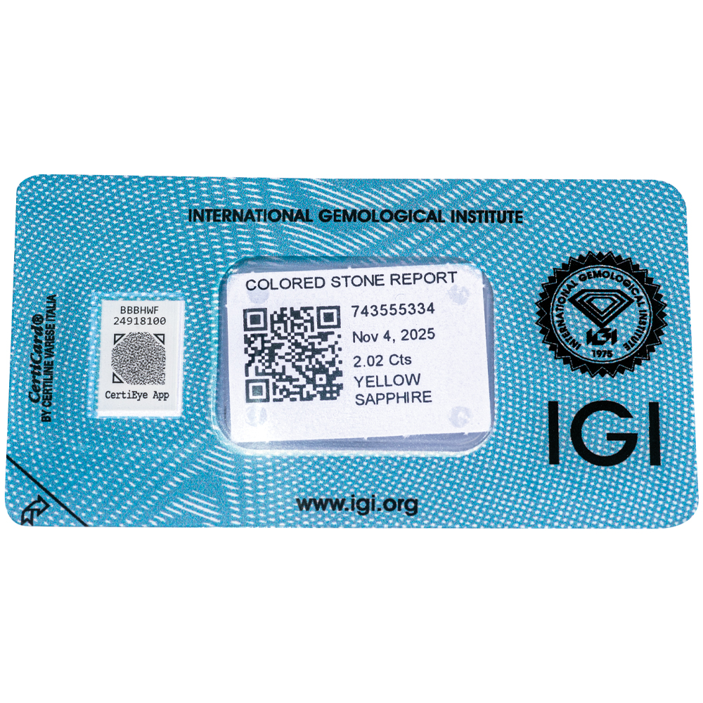IGI Certificate Bi Color Sapphire 2.02 ct.
