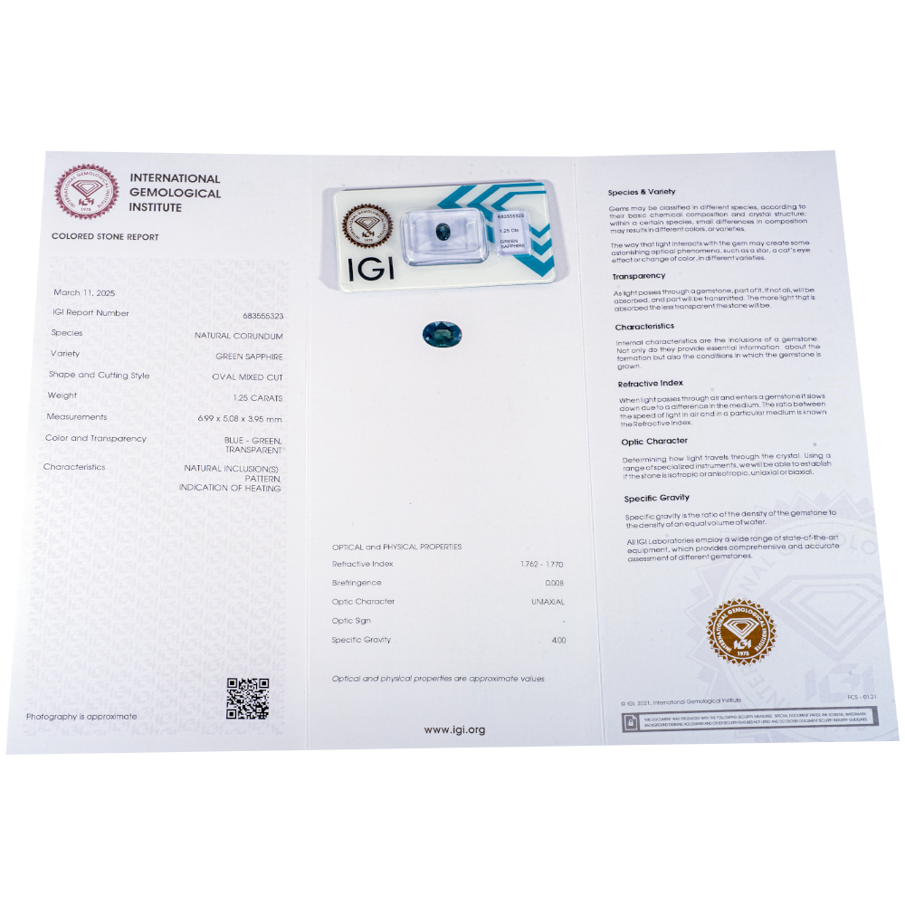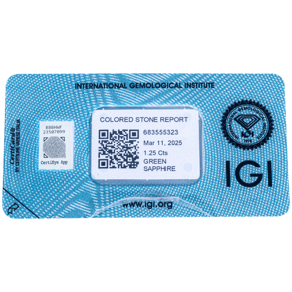 IGI Certificate Green Sapphire 1.25 ct.