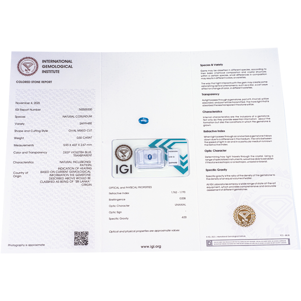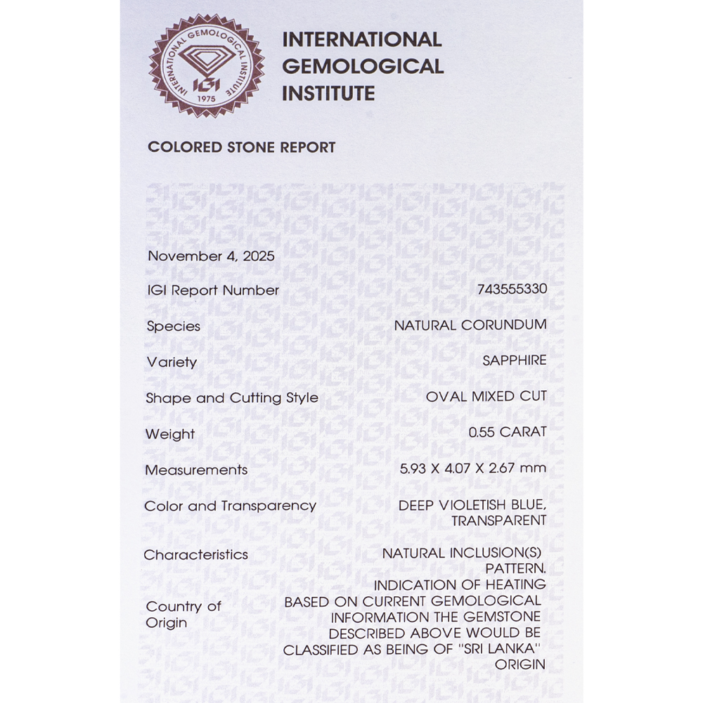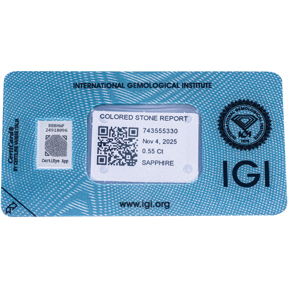 IGI Certificate Sri Lanka Blue Sapphire 0.55 ct.