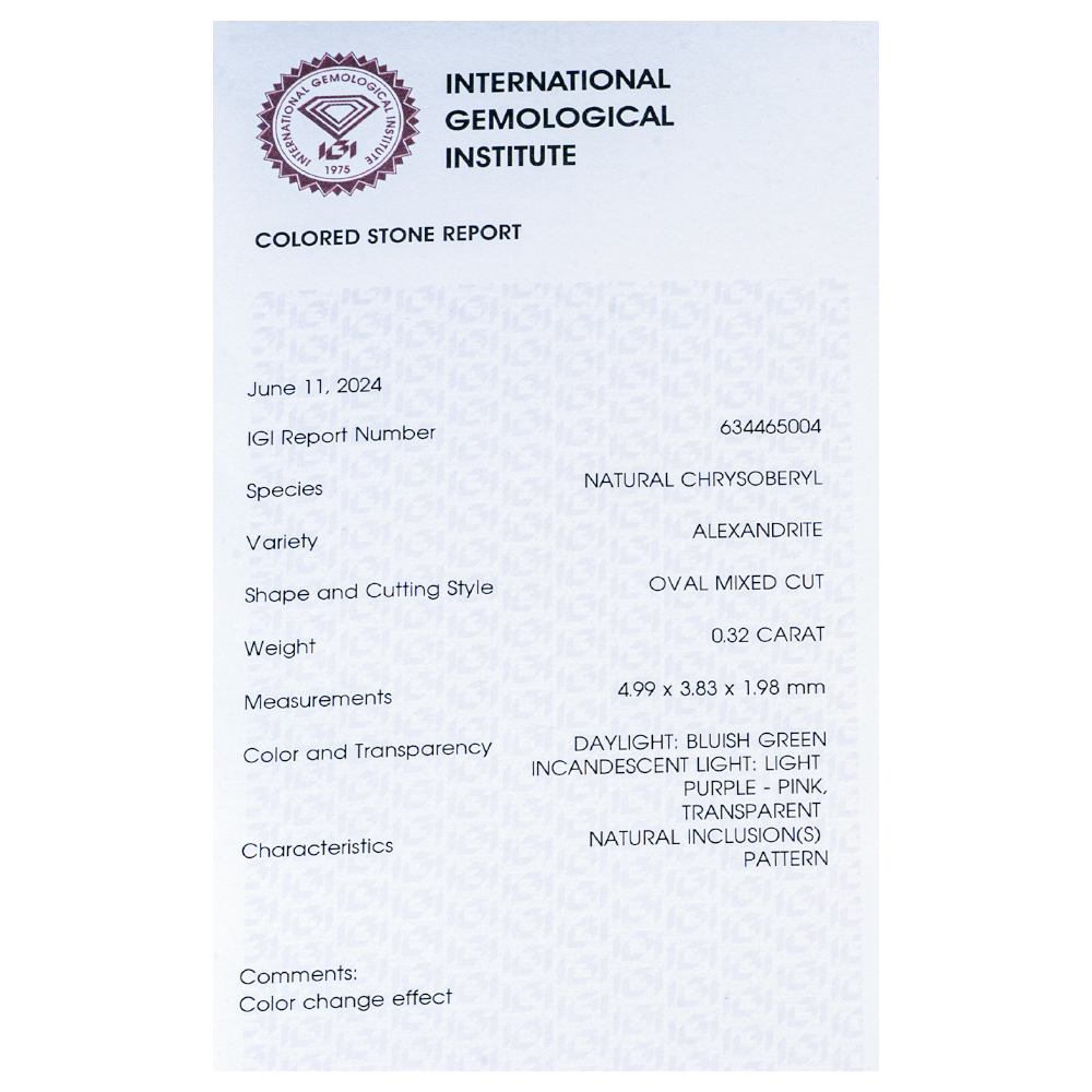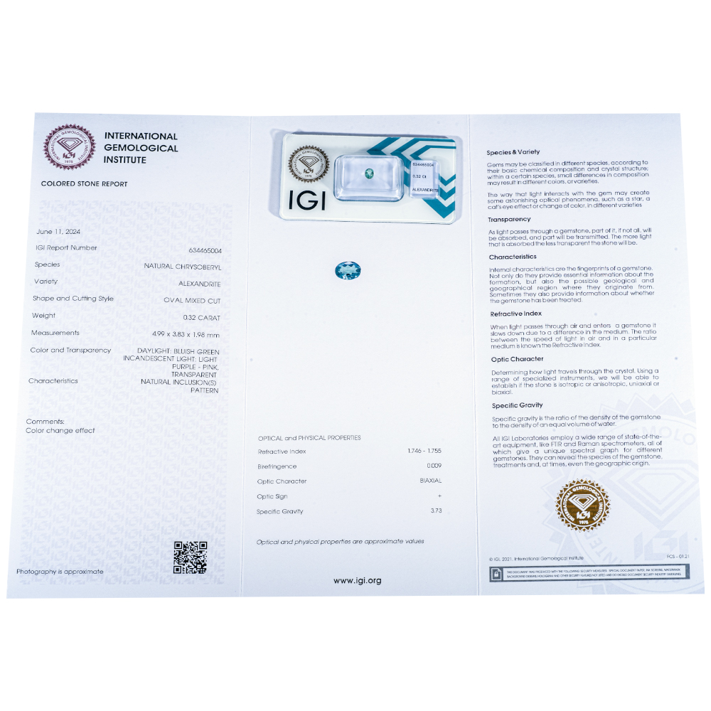 Very Rare varies of the Chrysoberyl. This Alexandrite is perfect for a collection, or handmade jewelry. The stone’s cut is so perfect that it can reflect light in the shape of a tulip.